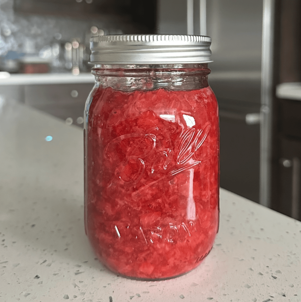 PS: This is how red a homemade strawberry jam looks like without Red 40 (no editing on photos):